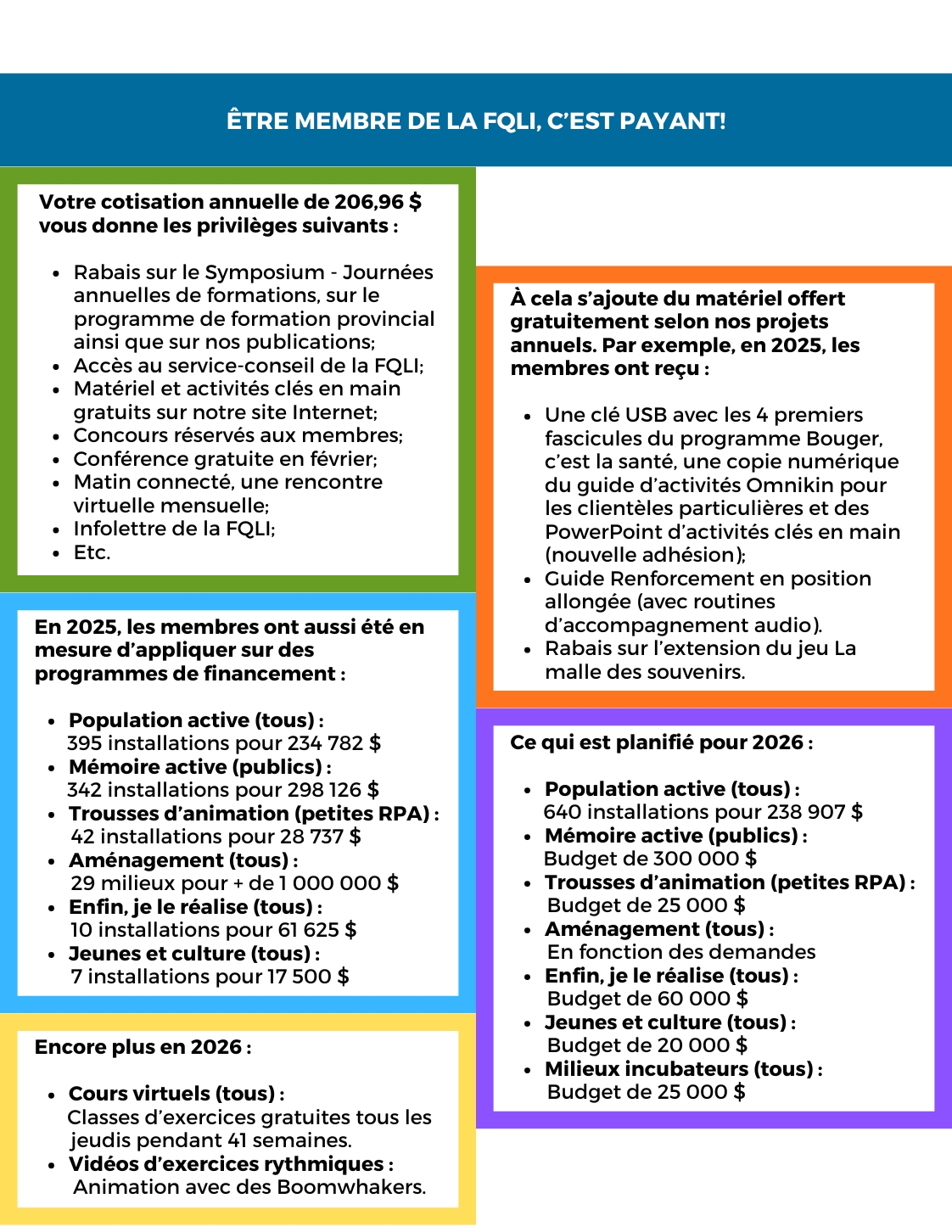 Au cours des mois de février et mars, tous les membres de la FQLI recevront gratuitement deux...