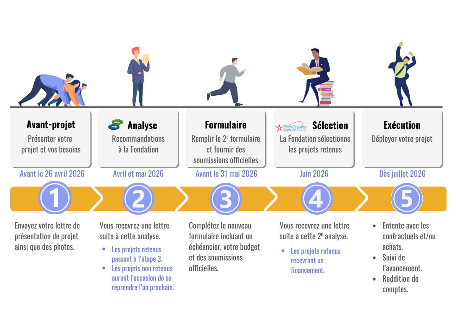 Afin de vous éviter de passer trop de temps sur votre demande, nous débutons le processus par une lettre. Si votre idée est retenue, vous serez invité à remplir le formulaire officiel.