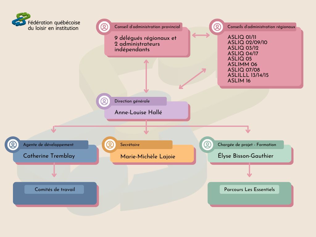 Notre fédération s’appuie sur une structure collaborative où le conseil d’administration, les comités régionaux et l’équipe professionnelle travaillent en synergie. Chaque niveau joue un rôle complémentaire afin d’assurer la cohérence, la qualité et l’innovation des services offerts. Ensemble, ils veillent à soutenir les membres, développer des projets porteurs et faire rayonner la mission de la fédération.